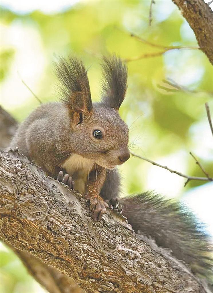 枝干间的松鼠,是校园里的“跳跃健将”。它拖着蓬松的尾巴保持优雅平衡,在树枝间一次次精准跳跃,偶尔与路人短暂对视后,便迅速隐入绿荫,只留下轻微晃动的枝叶。